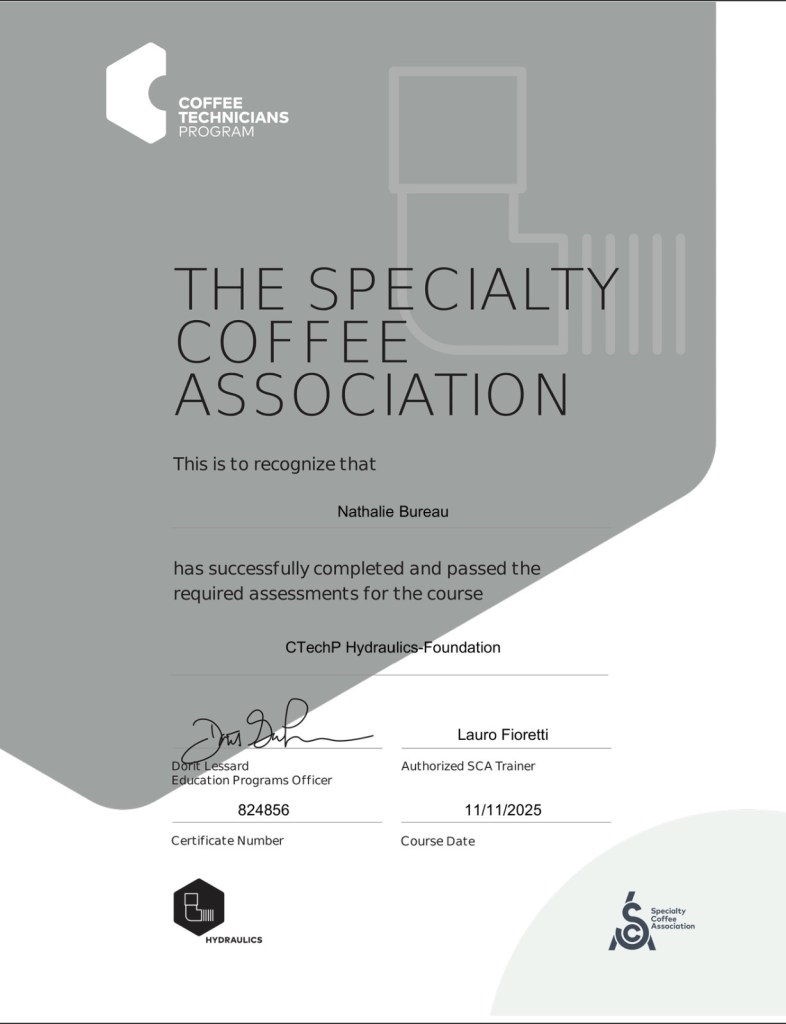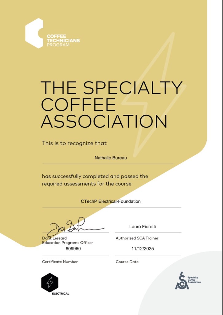 Specialized training with the Specialty Coffee Association: Hydraulics and Electrical Foundations.